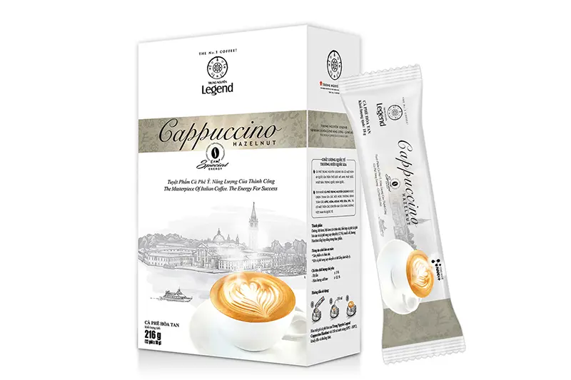 • Cà phê Cappuccino Hazelnut – hộp 216g