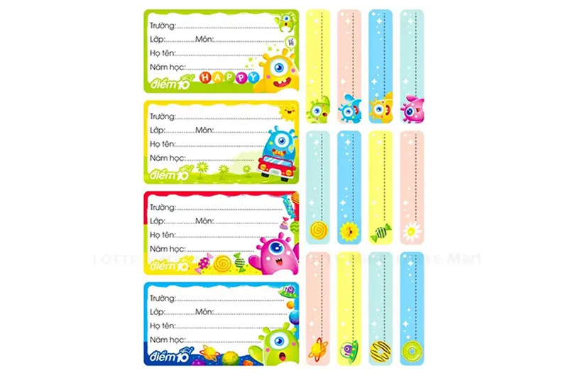- Bóc tách các tờ nhãn dán ra khỏi xấp sau đó dán nhãn vở lên quyển tập, sách cần sử dụng và ghi thông tin lên trên bề mặt nhãn vở.